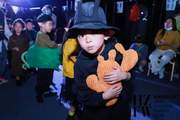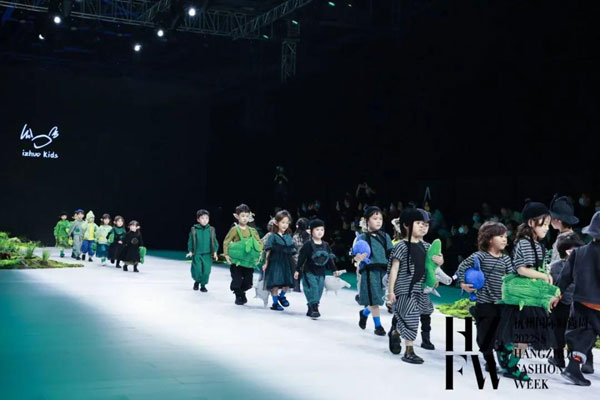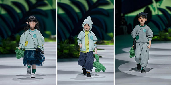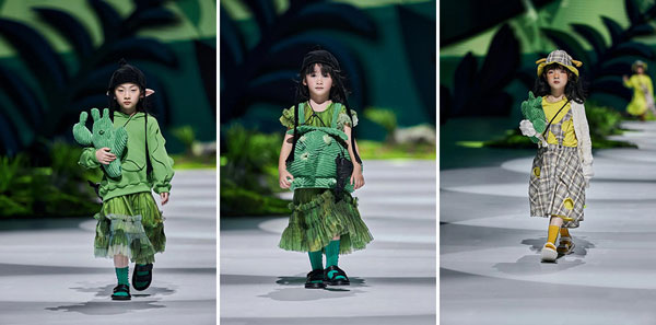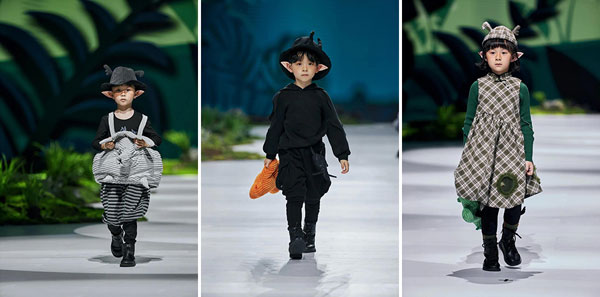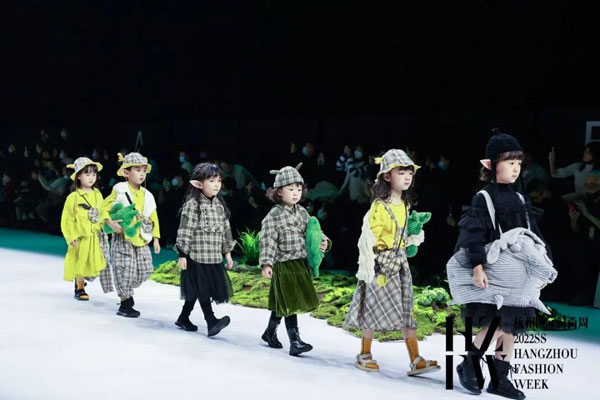 于杭州國(guó)際時(shí)尚周2022SS上演的小日著2022春夏系列,以“飛魚豬”為主題,用充滿想象力的設(shè)計(jì),為小朋友描繪出一個(gè)奇異的東方世界:在桃花源里生活著一種賤仔獸——飛魚豬,它像豬一樣有著胖乎乎的身體,像魚一樣在水中游來游去,渾身布滿紅色的斑紋,擁有隱身的技能,當(dāng)敵人來臨的時(shí)候,能夠吐出泡泡作為武器……