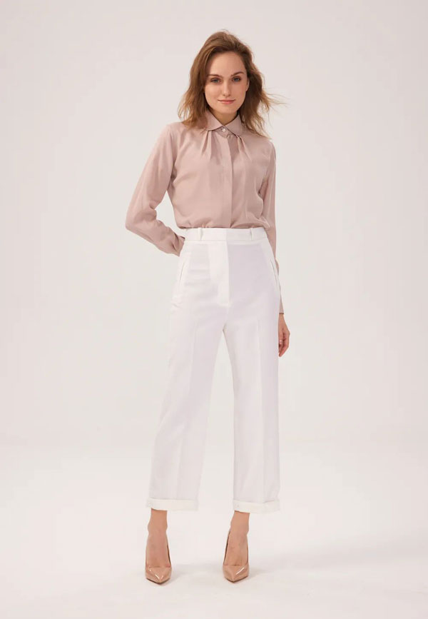 穿久了沉悶的黑色和深色系下裝,一條白色褲子可以輕松改變穿搭風格。夏季褲子以利落寬松為主,西褲、煙管褲或者闊腿褲都能很好的修飾腿型,且百搭實穿,讓整個人變的輕盈雅致。