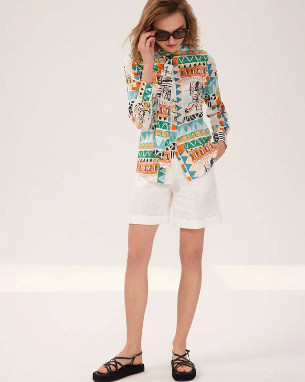 炎熱地區則可以選擇白色短褲,保持涼爽體感的同時,還能隨心搭配上衣。