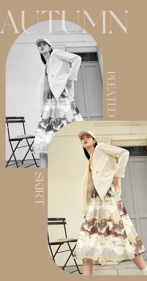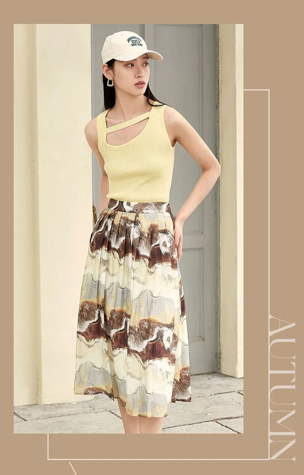 Betu百圖2022初秋,以“城市輕行”為寄語,探索自然帶來的療愈質感,螺紋背心,便西套裝,工字褶半裙,在風格交錯之間,輕盈出行豐盈生活。