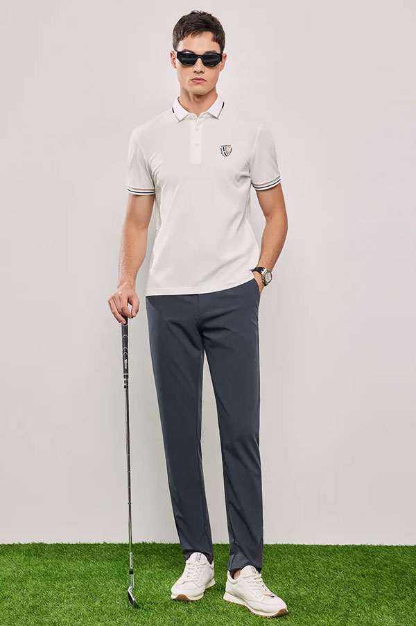 走進putting green,清新的草木芬香即刻喚醒身體里的運動基因,胸口細膩精巧的LOGO刺繡設計,彰顯紳士小心思,撞色提花領勾勒出別致隨性,利落的版型,揮桿更自如。