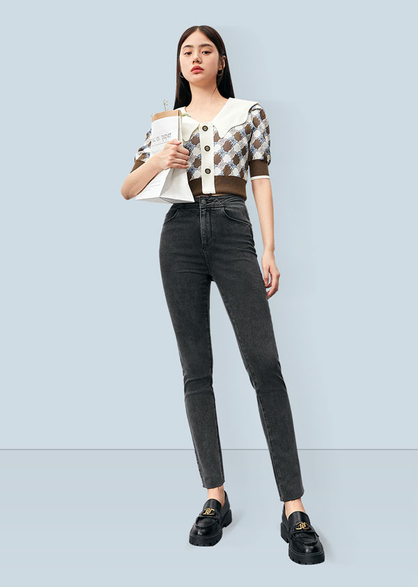 在著裝中收獲真實個性。貼身廓形隨行而動,彈力面料增加舒適感。高腰設計拉長身體比例,任意搭配皆能秀出自我魅力。