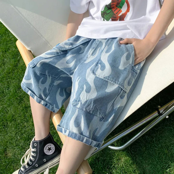 夏天來一條美式高街風滿印牛仔褲。個性火焰圖案,配合亮色小標設計,輕松get滿滿潮氣,帥氣利落的版型,一起來get帥氣搭配。