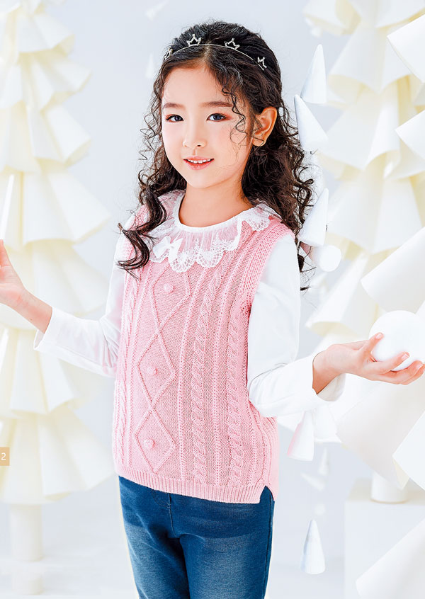 歸去來兮,經典的粉色針織小背心又來見面了,這樣的穿搭永遠不過時,紋路清晰的棒針織出規則的幾何圖案,內搭娃娃領的白色襯衣,厚實柔軟的水磨藍牛仔褲,我就是大家喜歡的小甜心。