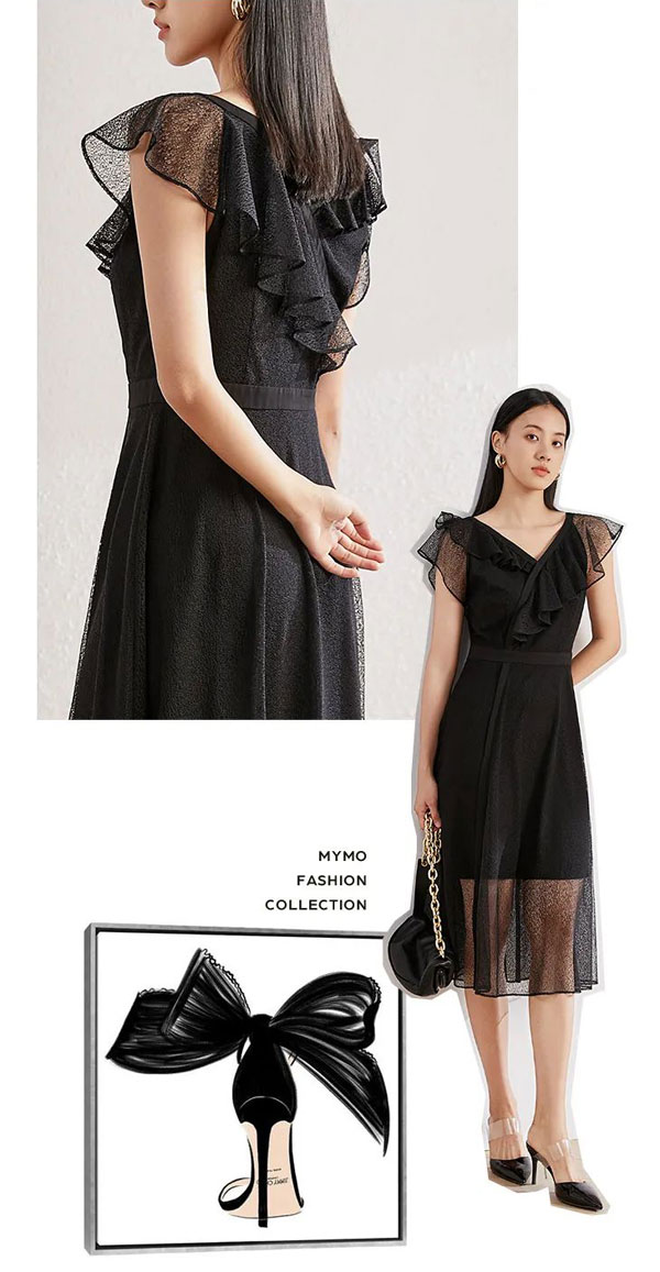無論什么場合,小黑裙永不出錯。以法式骨線蕾絲,精雕細琢盡顯優(yōu)雅浪漫。裙身半透視的視覺效果,朦朧中帶著若隱若現(xiàn)的性感氣息。利用絲巾作配飾,提升整體穿搭的精致度,伴你優(yōu)雅穿梭于各種生活場景,既是職場優(yōu)雅Lady,也能是休閑度假好心情。