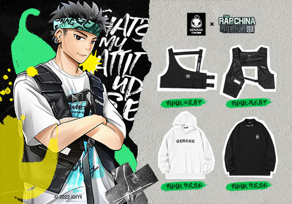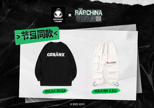 自2017年愛奇藝開啟中國說唱元年開始,GENANX閃電潮牌從未缺席過說唱盛宴!2022年燃力升級,強勢加入和推動,和《中國說唱巔峰對決》跨界合作,推出聯名系列;更有節目合作款高能出鏡,和Rapper一起制燥、攀登,站上說唱巔峰!