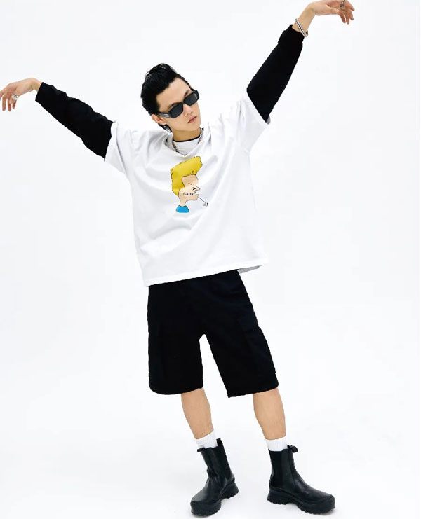 癟四與大頭蛋現(xiàn)身印花,倆人造型隨意卻意外的骨骼清奇,和死黨人手一件組合出街,最大的缺點就是太過惹眼!