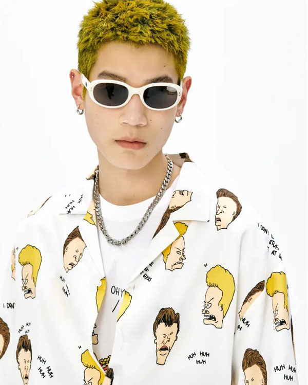 襯衫融入音樂旋律,頭像、樂符…和諧不聒噪,帶來迷幻又帶勁的前衛(wèi)感穿搭。