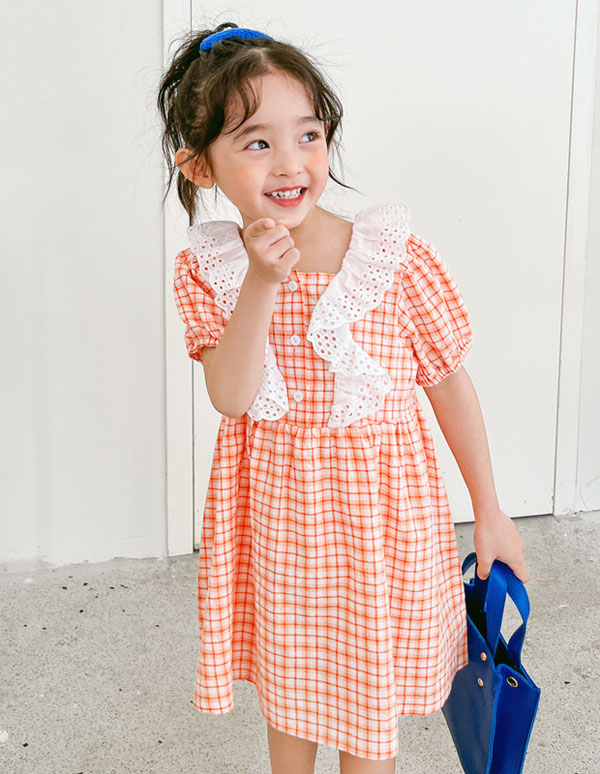 色彩明麗的小格紋連衣裙上身了,上部的白色鏤空裝飾,協調感十分到位,有趣又清新甜美可愛,年輕寶媽們別錯過了,這款連衣裙,可以承包小公主的夏天的盛裝,確保顏值在線。