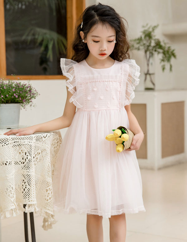淡淡的淺粉色連衣裙,多層拼接的薄紗面料,可愛元素的木耳短袖口,立體感超強,出街和居家,適合多種場合,甜美大方。