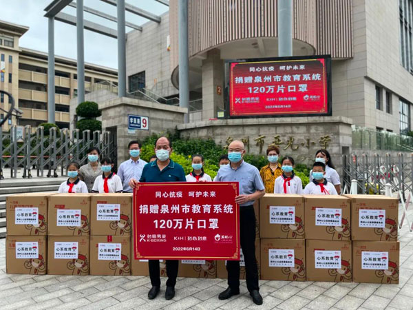 6月14日,勁霸集團攜旗下勁心勁意健康科技公司通過英林心慈善基金會向泉州教育系統捐贈120萬片口罩(包括成人口罩20萬片、兒童口罩100萬片)。所捐贈的口罩將由泉州市教育局統籌分配、勁心勁意公司負責配送至相關縣市區的中小學。