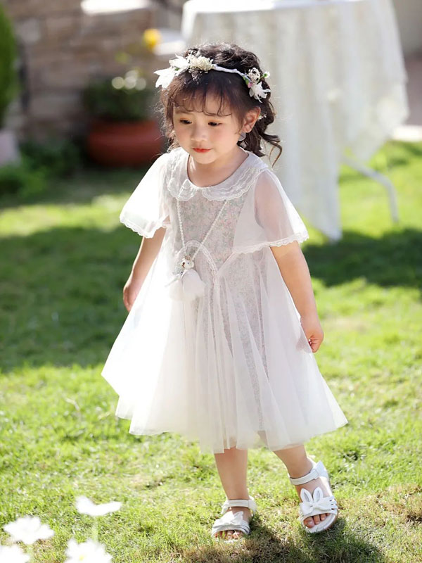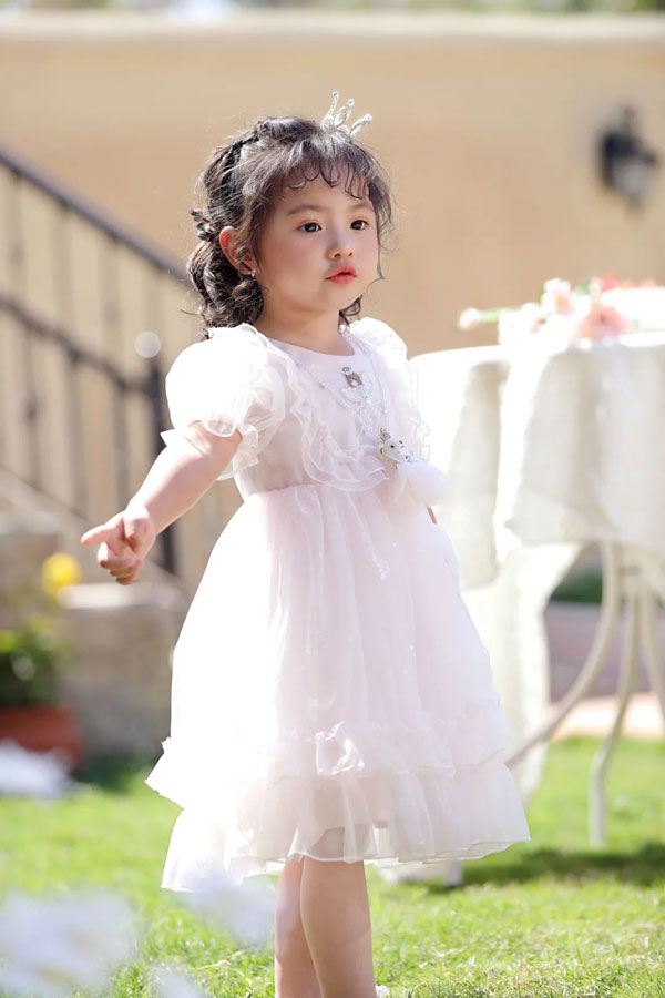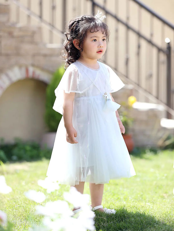 鏡頭里的小小萌娃,身穿漂亮的白紗裙,好像剛從童話世界中走來,自然靈動又可愛。