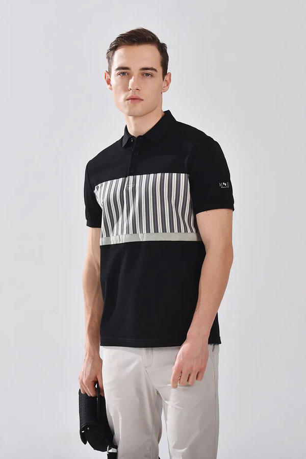 40支雙股絲光珠地面料,與針織條紋面料拼接設計,袖臂字母刺繡點綴,可通勤多種場合,如父愛是海,深沉而又寬厚。