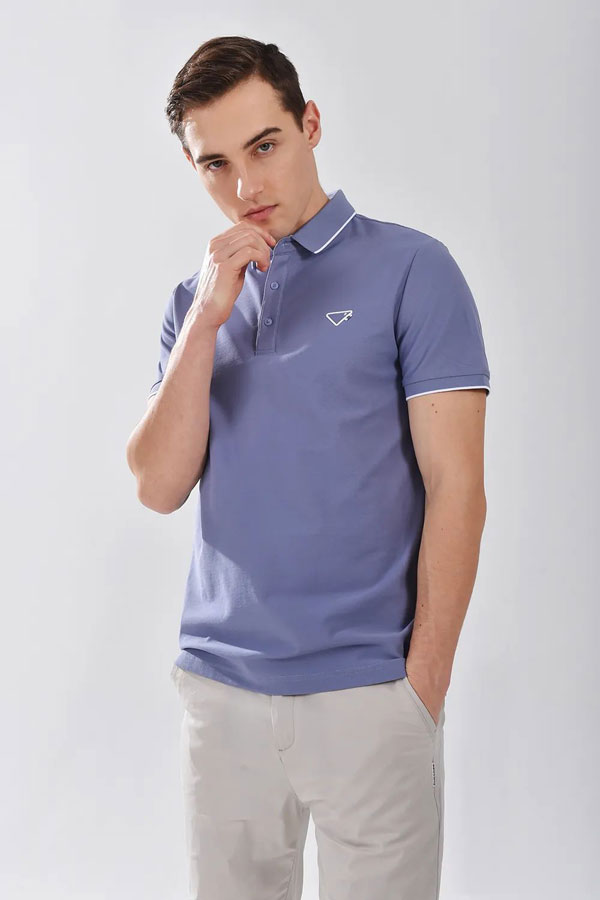 時尚商務系列,經典二級領版型,舒適挺括,色織撞色條領邊點綴,前胸刺繡標,年度代表色長春花藍配色,清爽時尚,讓父愛在年輕一回吧!