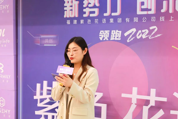 線上招商會互動氛圍熱烈火爆。會上,紫色花語商品中心總監帶領參會嘉賓走進品牌新消費,對品牌和產品供應鏈做了深入講解和介紹。