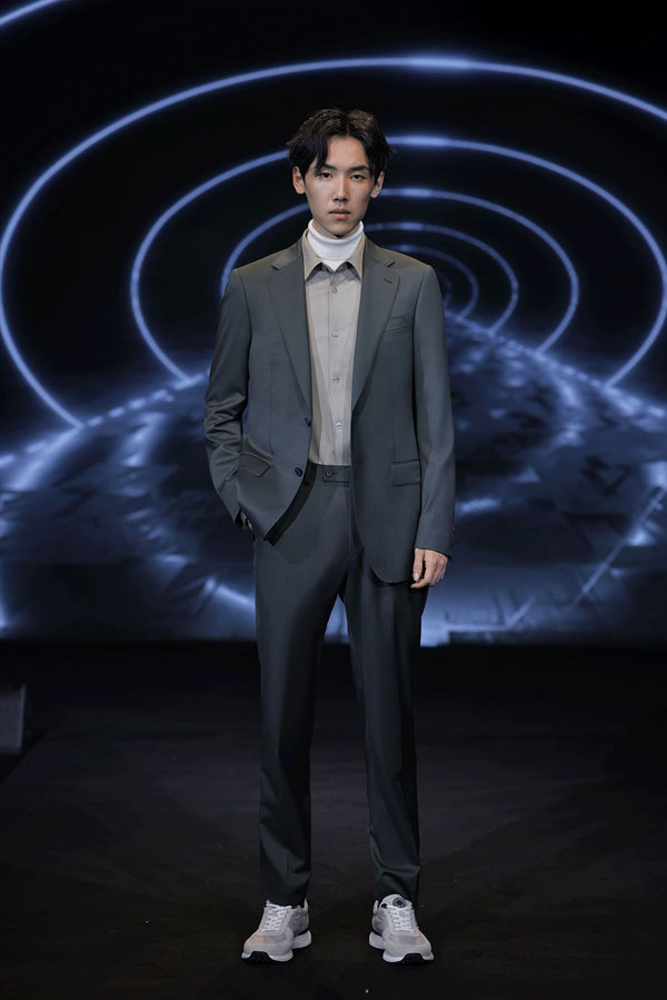 本次新品發布秀以運動西服為核心,為觀眾們帶來了一場沉浸式主題大秀。不同于以往傳統西服秀常見的商務嚴肅氛圍,此次運動西服的秀場營造了機場的概念場景,旨在向觀眾表達運動西服自由無束的設計理念,更適合商旅出行。整場大秀輕松舒適,在場領導及各屆嘉賓對大秀及運動西服系列都給予了高度的認可。