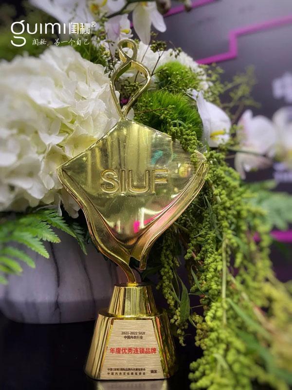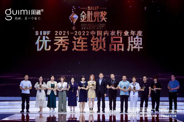 8月10日,閨秘品牌在2021-2022金肚兜 · 中國內衣行業年度頒獎盛典中,再次榮獲「優秀連鎖品牌」獎項。
