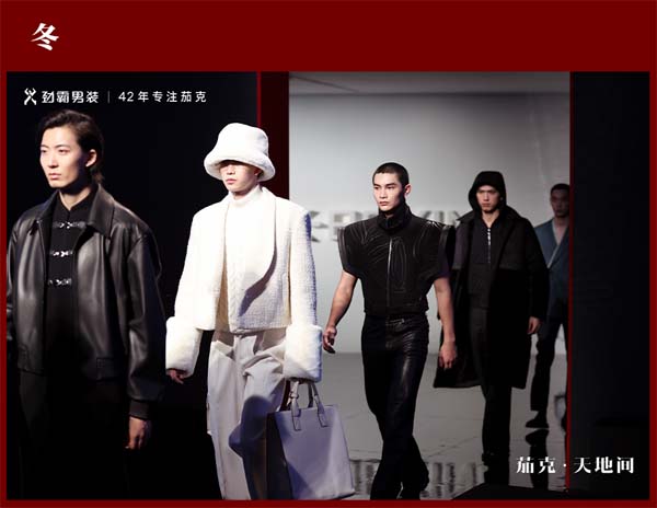 勁霸男裝融天地達觀,從醇厚中國傳統文化基底出發,合四時流轉、相生萬象之靈感,春為生,夏為盛,秋為收,冬為蓄,首次集結四季意象全品類茄克78套秀款,以勁霸男裝為主體,輔以旗下高端系列KB HONG及童版秀款MINI HONG娓娓道來「因時而衣」的東方四季著裝美學。