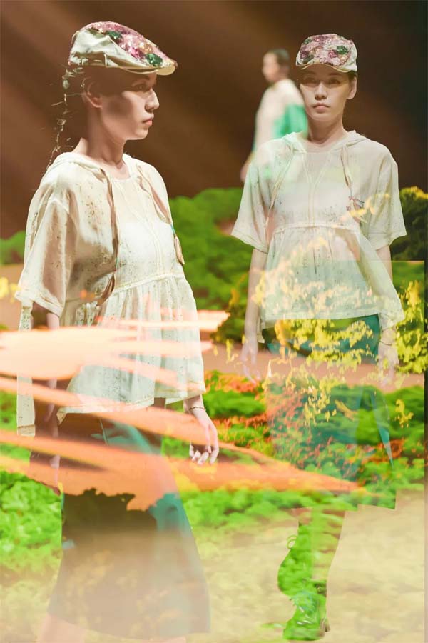 在細節中探索生命之美,以原創紋樣和材質拼接為載體,輔之以創新刺繡、手工噴繪、巧妙印花等工藝,展現文藝浪漫與國潮相融合的設計風格。