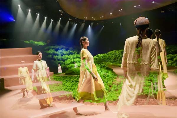 本季新裝的靈感來源于自然最本真的力量,反復出現仙鶴、綠植、花卉、海浪等元素,仿似自然給予人類的饋贈,和陽光空氣流動的水一樣,具有永不褪色的浪漫和感動。