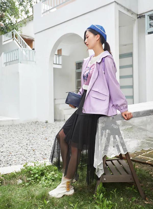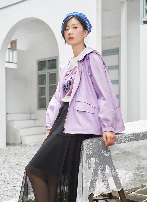 小短款工裝外套設(shè)計(jì),前片斜切式分割,大落肩的闊型感,文藝休閑隨性,寬松的版型不挑身材,短款對(duì)小個(gè)子也很友好可實(shí)現(xiàn)多種穿搭方式,浪漫的馬卡龍紫色,少女感十足。