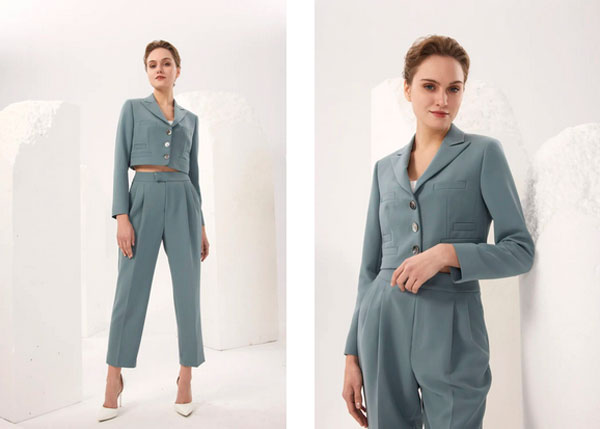 加入灰色調(diào)的藍(lán)更有大氣穩(wěn)重之感,紅領(lǐng)女裝定制這款西裝上衣超短款式的剪裁中和沉悶氣氛,為整套西服增加活潑靈動(dòng)氣質(zhì),正式又不乏亮點(diǎn),適合大多數(shù)通勤場(chǎng)景需求。