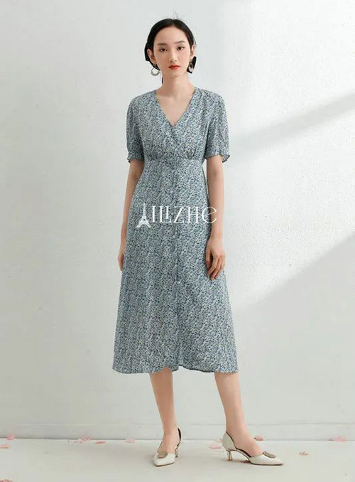 法式茶歇裙一定是優雅的代名詞,也是今夏很火的一款連衣裙,穿起來簡約舒適,又帶著復古精致的美,適合成熟一點的女生,更有女人味。清淺藍的印花茶歇裙,淡淡的藍色很是追求夏日清爽的味道,經典的V領設計,很好地修飾了臉型,也讓脖子顯得更修長,復古溫柔的花色,更顯雅致,上班穿體面又顯氣質。