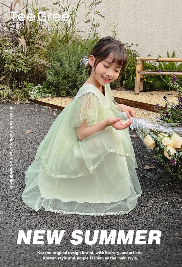 有花有草,春光明媚,我們一起來玩游戲郊游去,帶上可愛的小公主,穿上時髦漂亮的內綠色闊擺連衣裙,層層拼接,立體動感,小公主有了這件連衣裙,每天都是好心情。