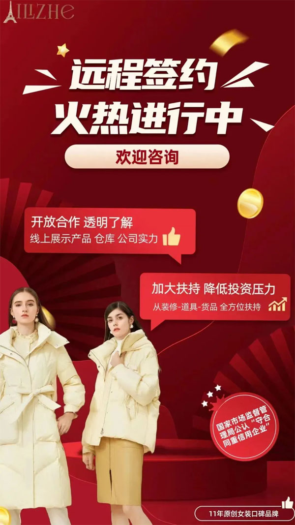 疫情雖然嚴(yán)重,邁向成功的腳步也絕不停歇,就算不能親臨也不會(huì)遺憾!為增強(qiáng)品牌終端店擴(kuò)展性,方便各省意向合作商進(jìn)一步了解品牌綜合實(shí)力,艾麗哲總部全面開放線上通道,通過視頻遠(yuǎn)程直供了解產(chǎn)品結(jié)構(gòu)、倉庫現(xiàn)貨規(guī)模、總部綜合規(guī)模情況,更加大了扶持力度,遠(yuǎn)程簽約一步到位。