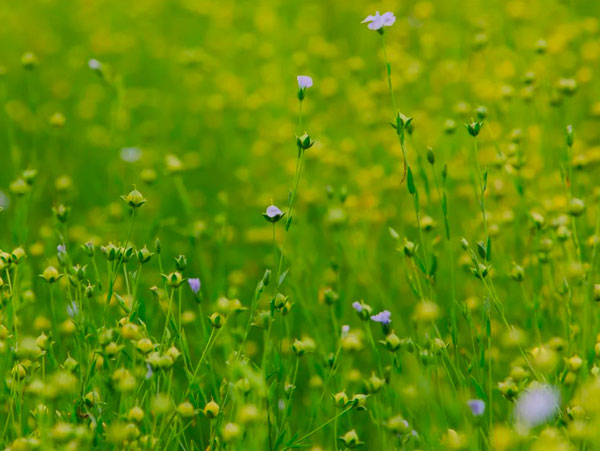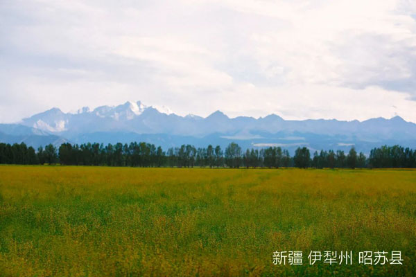 每年6月底至7月初,亞麻田里掀起藍色花海的波浪,朝開暮落前赴后繼綿延一個多月,瀲滟起雪山和碧空之間的動人畫卷。