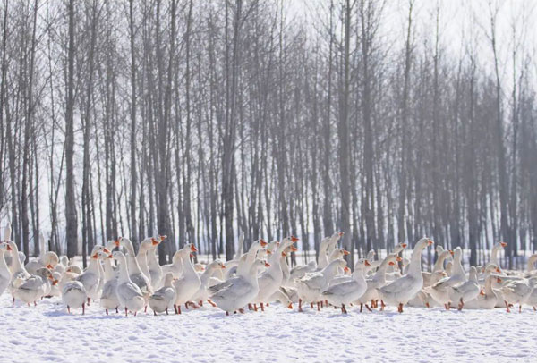 長白山松花江流域北緯43°,這里有中國最大的森林區、600多個天然湖泊、發達的松花江水系;這里冬季漫長,最低氣溫可達零下40°C;這里養殖著生長周期長達360天的松花江大白鵝,產著品質上佳的鵝絨,松花江大白鵝鵝絨,是全球公認的“黃金羽絨帶”。