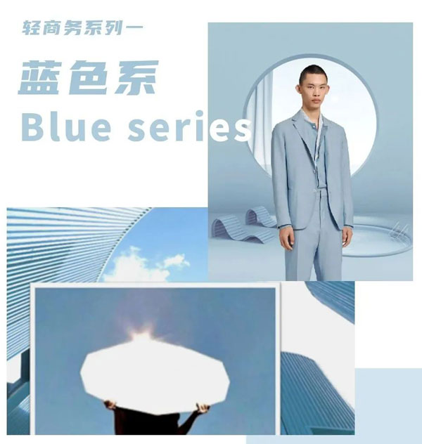淺藍為色彩基調,將硬朗幾何與柔和色彩串聯,探索時尚邊界穿梭于多元化城市之間,明亮而富有希望,打造現代時尚輕商務風。
