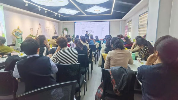 在新品介紹環節,譚麗芳老師憑借資深的行業經驗和對市場環境的深入了解,重點介紹2023當季新品——國色添香III的設計理念、賣點與優勢,讓在場每位家人都能深刻地了解當季新品,掌握當下趨勢。