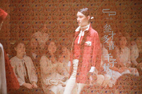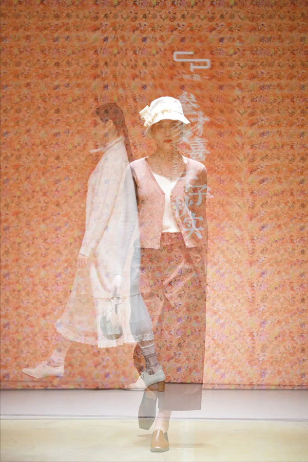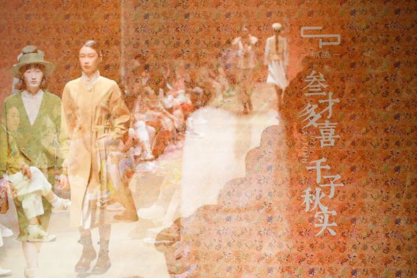 大秀以秋日碩果累累的場景為大秀主色調,在“叁才多喜”的中國傳統吉祥紋樣的背景之下,套套文藝浪漫的新品服飾映入眼簾,一城畫一所詮釋的原創設計,如秋日溫潤的麥浪一般一下又一下輕柔地拍打在觀眾的心上。