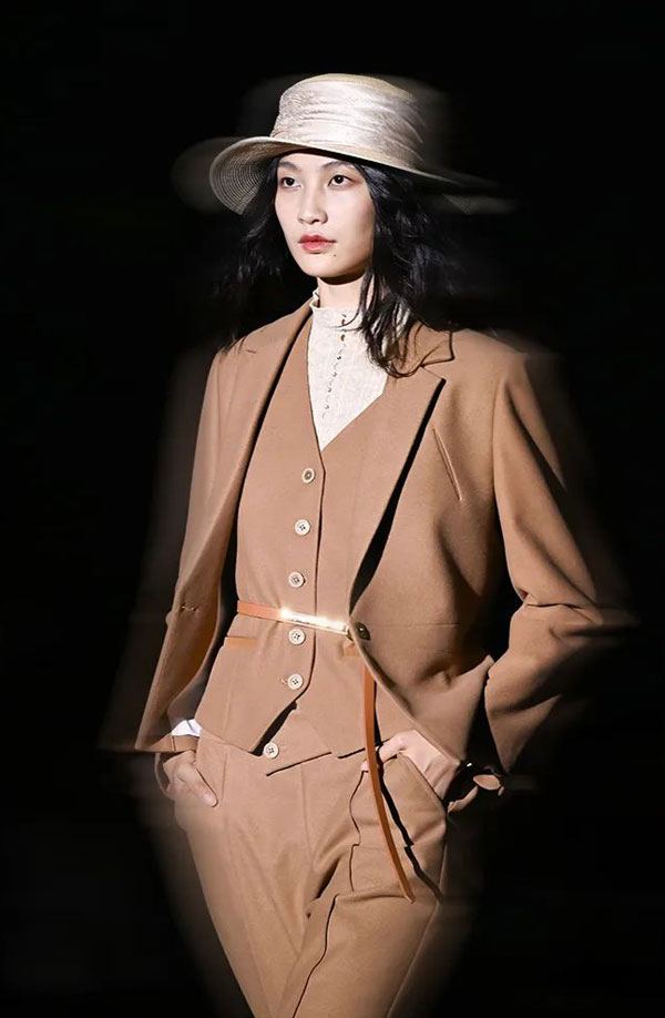 低飽和的大地色系突顯從容溫潤的生活態(tài)度,優(yōu)雅的駝色展現(xiàn)堅定的女性力量。經(jīng)典黑白演繹新式,自然肌理融入衣間,循跡揭幕秋冬序曲。通過以色彩柔和的方式放松心靈,營造靜謐療愈的自然氛圍。