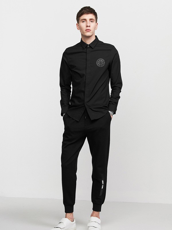 襯衣是經典單品之一,我們熟悉的白襯衣,簡約自然,可以提升造型的氣質感。而除了白襯衣,黑襯衣則會讓男士看著更具酷感。V-MEN男裝品牌的這款黑襯衣,顏色經典百搭,穿起來質感有型。搭配一條黑色的束腳休閑褲,顏色經典百搭,穿起來休閑時尚。搭配一雙小白鞋,呈現出了酷感有范的男士內搭造型!