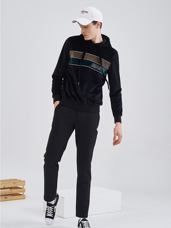 秋冬氣溫下降,男士在造型中運用衛衣次數多起來了。男士不妨為自己挑選一款黑色的連帽衛衣,為自己打造一身酷感的內搭造型。V-MEN男裝品牌的這件黑色連帽衛衣,顏色經典百搭,連帽設計增添了造型的休閑感,穿起來休閑有型。下身搭配一條黑色的長褲,穿起來利落有質感。搭配一雙黑色的帆布鞋,舒適時尚。佩戴一頂白色的棒球帽,打造出了酷感的休閑內搭穿搭!