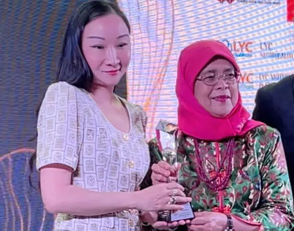 2023新加坡藝術與慈善活動于2023年6月8日在新加坡圣淘沙名勝世界隆重開幕,新加坡現任總統哈莉瑪為活動主賓。NEWFOUND紉方&RareRegina瑞吉女皇品牌創始人REGINAFANG (方藝潼)作為受邀方,接受新加坡現任總統哈莉瑪頒發的2023慈善藝術獎。
