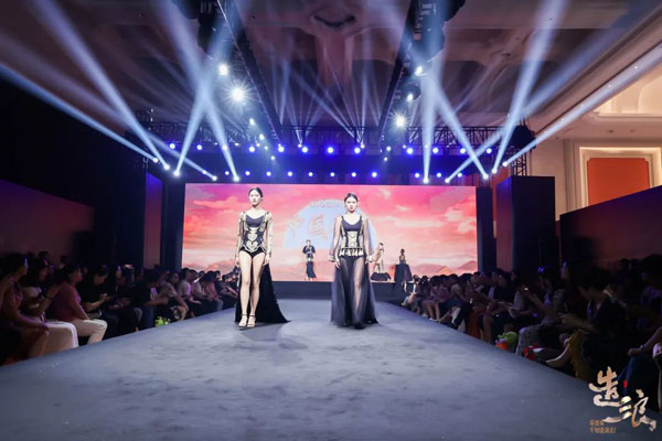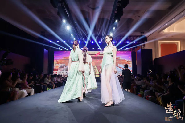 悠揚典雅的古韻徐徐而起,身穿愛戴新品的模特登場,舉手投足間儀態萬千,一顰一笑中瀲滟流轉,傳統風韻與現代時尚在此刻交織生花,共同造就這派盛世風華。
