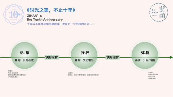 因此在下半年,我們會(huì)圍繞十周年以及818紫涵節(jié)兩大營銷話題開展一系列活動(dòng)。在十周年活動(dòng)中,品牌將推出十周年系列視頻之消費(fèi)者篇以及十周年特別限定系列《拾年》的上市。另外,818紫涵節(jié)將分為預(yù)熱期制造聲量,第一階段的熱度測試和新品預(yù)售以及第二階段的特別限定系列產(chǎn)品上市和推廣。最后,我們將加快POP STORE快閃布局以提升增量,從中找到更多可能性渠道,觸達(dá)不同區(qū)域的人群,更好地了解消費(fèi)者的喜好,并有針對性地匹配產(chǎn)品。