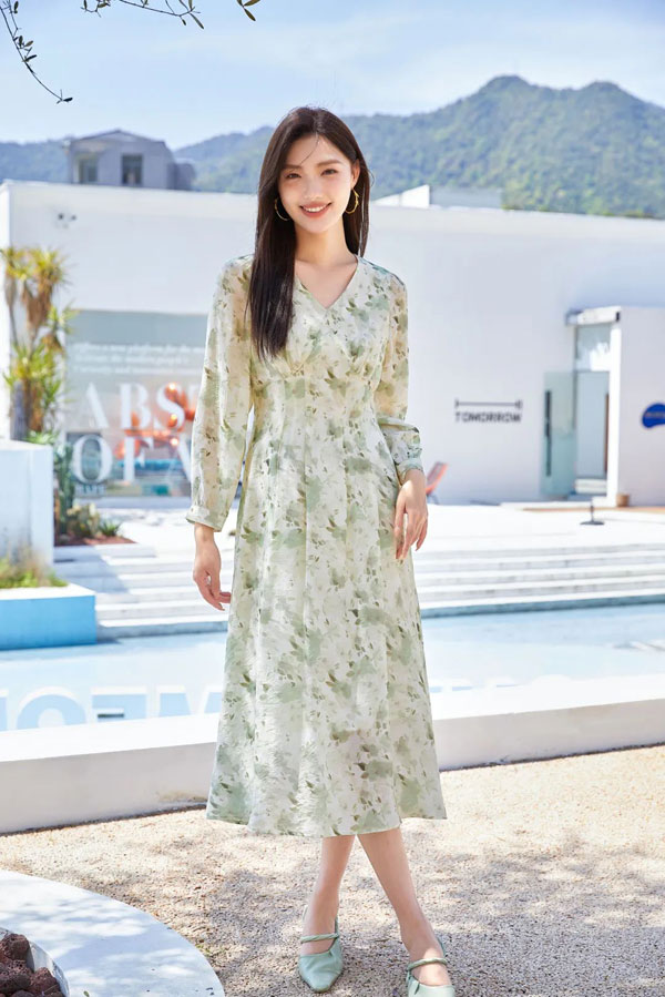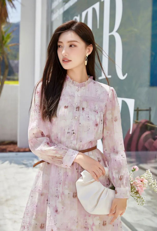 把秋日的浪漫和遐想統統囊括的連衣裙,光線的折射展現出高級質感,細膩的肌理呈現出非凡的工藝,讓女性魅力在不經意間優雅展露。