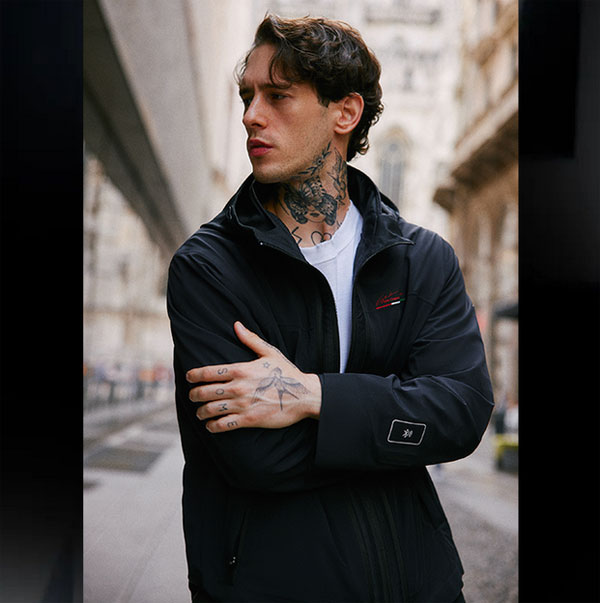 七匹狼聯名意大利超跑設計師Aldo激發超跑與夾克的碰撞,硬朗廓形線條結合可再生功能面料,用科技打破時尚邊界。