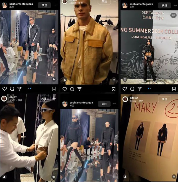 米蘭及國際時尚博主現場觀秀,并在INS平臺上傳秀場照片,引起外網熱烈反響。