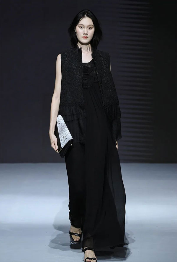 在行步搖曳間所產生的自然肌理褶皺,質感出眾,賦予了著裝一種流動的美感輕盈而隨性。