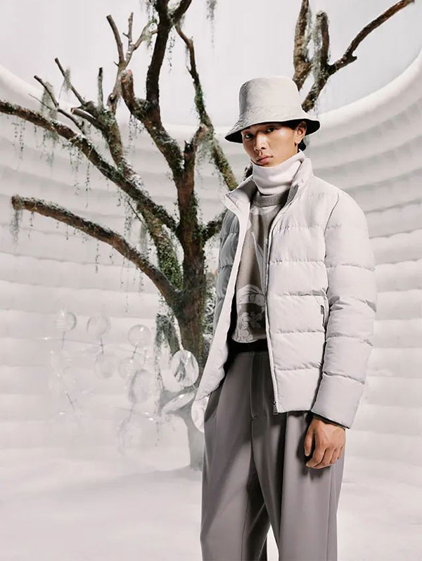 以然為源,根植大地,本季“容RONG”系列甄選珍稀纖維與環(huán)保面料,帶著自然的氣息,拓展材質(zhì)的功能性,在衣物形態(tài)中延續(xù)生生不息的溫暖。
