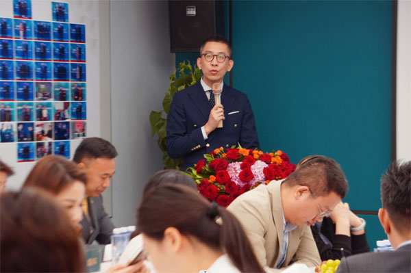 紅領河南總代理葉新強總經理也發表了講話,他介紹了善客尚匯的商業模式、河南紅領運營中心的市場規劃及紅領加盟商的幫扶計劃。他表示,善客尚匯一直致力于為客戶提供高品質的服務和產品,并希望通過與Lanificio Cerruti 1881的戰略合作,共同推動紅領品牌在河南市場的發展。
