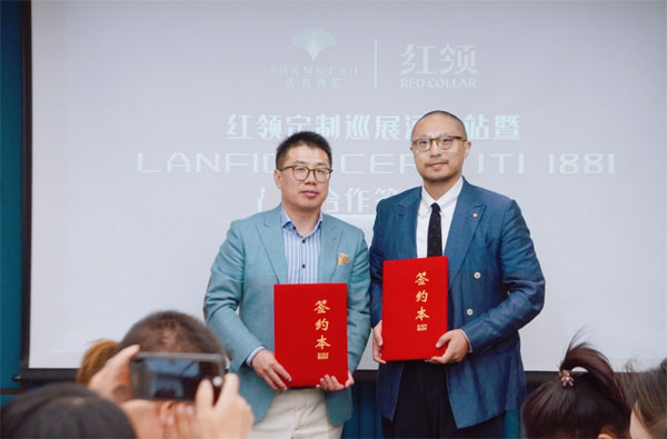 2023年10月24日,“紅領定制巡展河南站&Lanificio Cerruti 1881戰略合作簽約儀式”在善客尚匯紅領定制生活館盛大舉行,加盟商與業界精英齊聚一堂,共同見證這一重要的時刻。