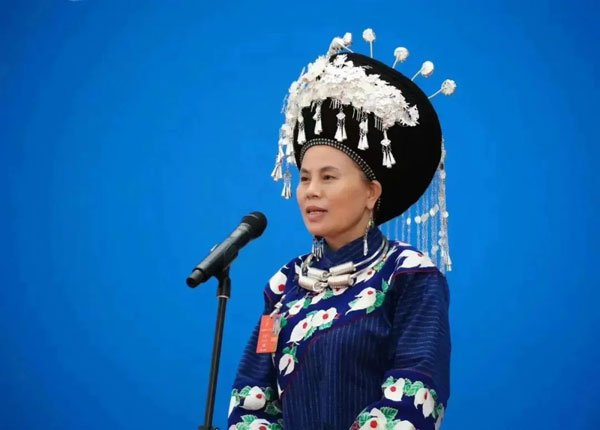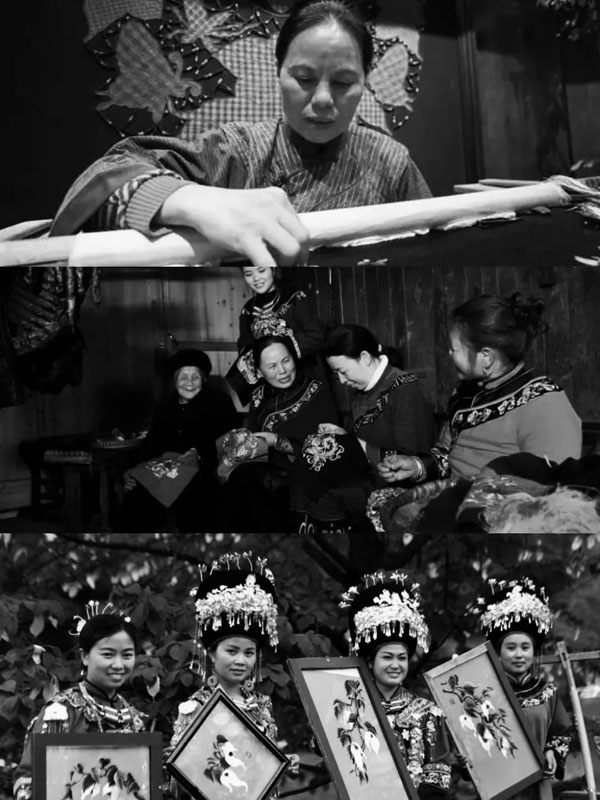 卡蔓23秋冬非遺鴿子花系列 x 全國人大代表/國家級韭物質文化遺產苗繡項且代表性傳承人石麗平。