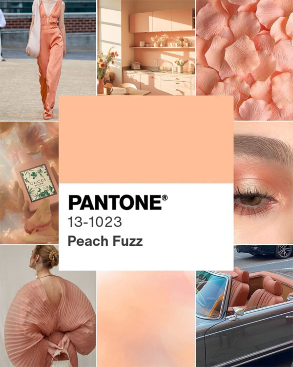 透過Peach Fuzz柔和桃色調獲得舒適感,我們得以尋求內在平靜,促進身心健康。Peach Fuzz柔和桃喚醒我們對舒適觸感與溫暖包覆感的各種感官體驗,既是一種想法,也是一種感受。——彩通色彩行政總監Laurie Pressman