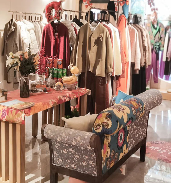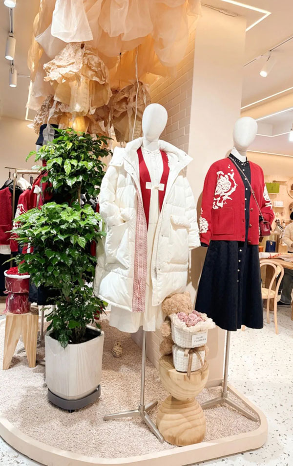 各式文藝風格當季精品新衣陳列其中,獨具巧思的設計風格,舒適溫暖的面料與色彩交相輝映,呈現出別具一格的品牌服裝風格,也表達出女性多面多變的豐富內在。